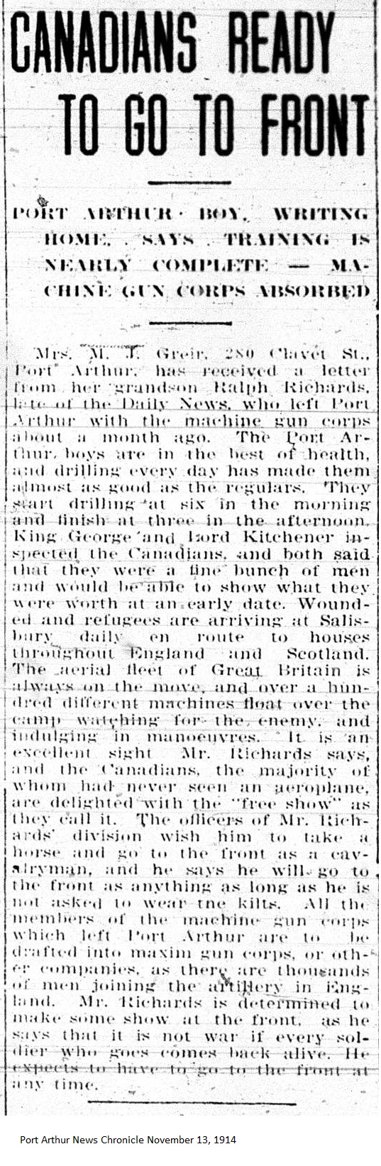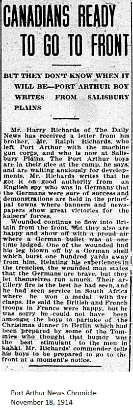 The Fort William Daily Times Journal and the Port Arthur Daily News respectfully solicited letters from soldiers at the front – or extracts therefrom – during the First World War. Any reader who had a letter from a relative or friend with the British, French or Russian forces was invited to submit said letter for publication to the community.