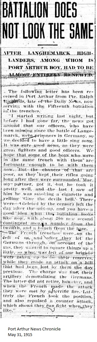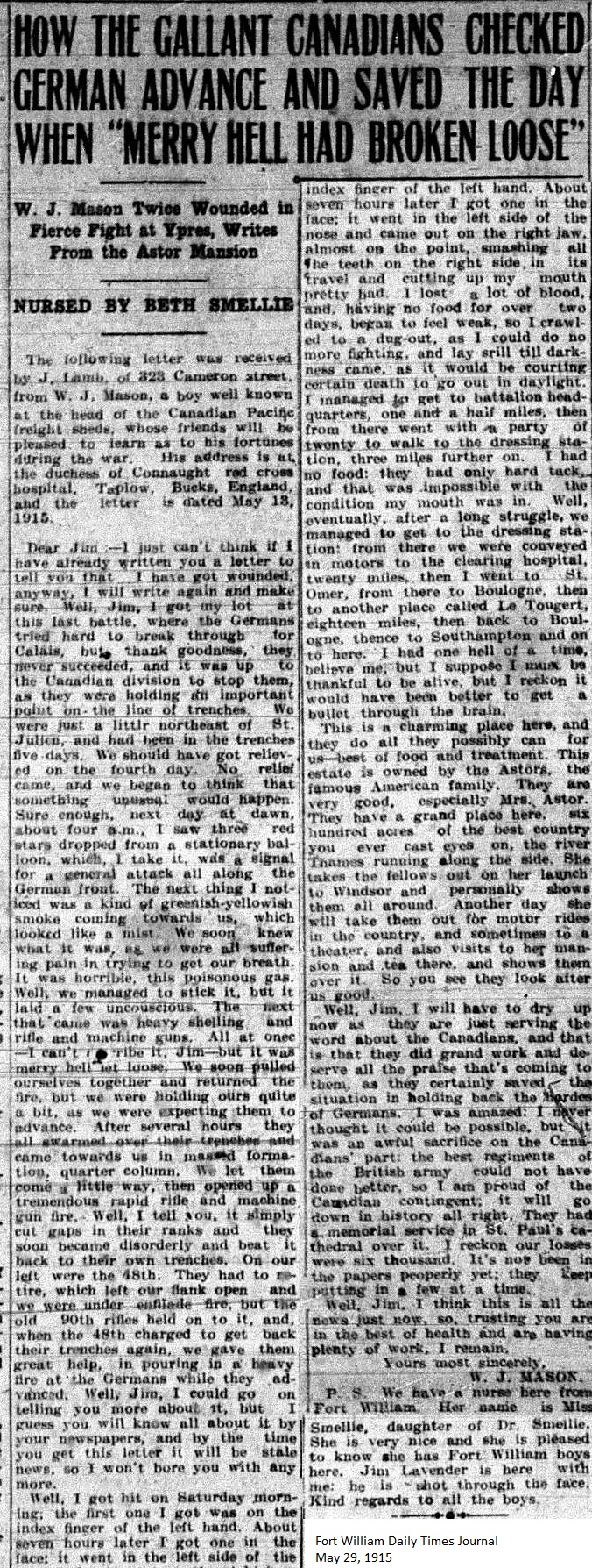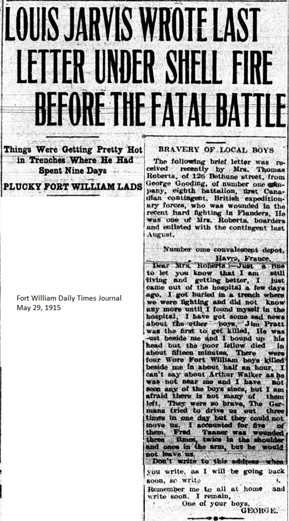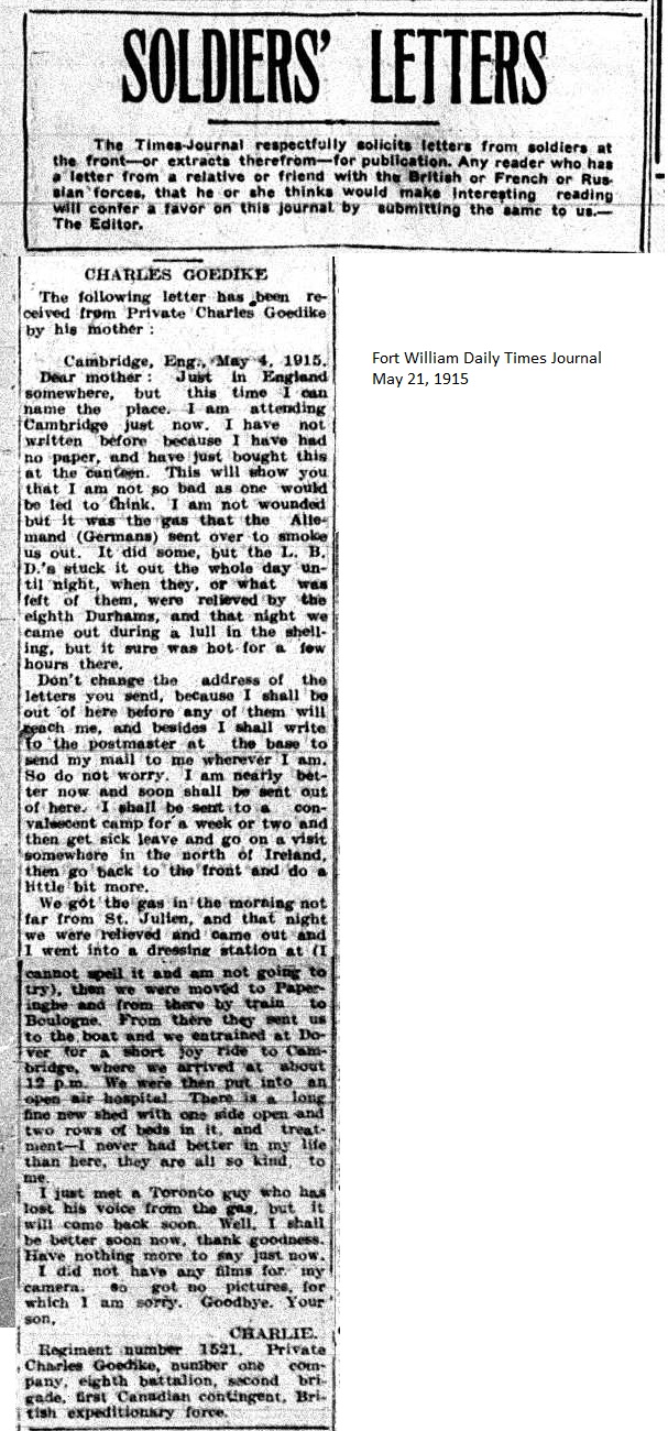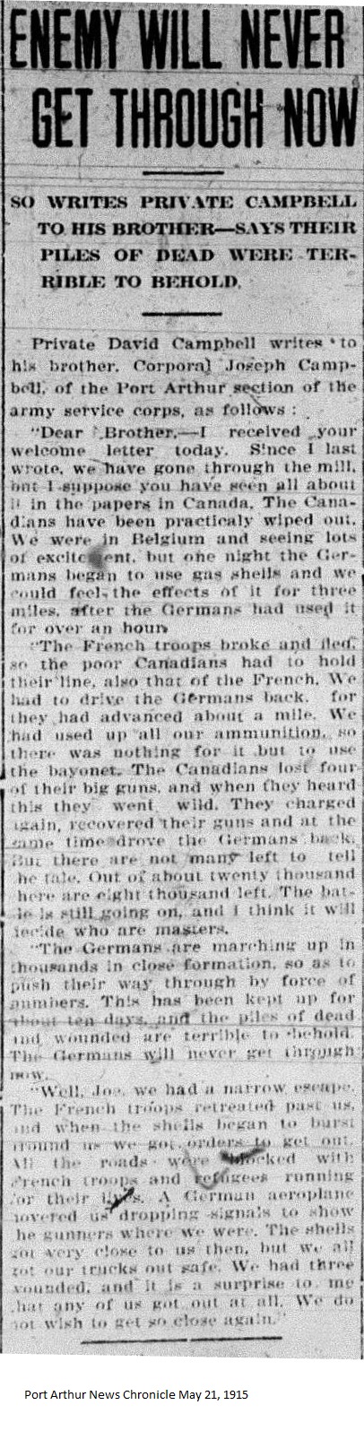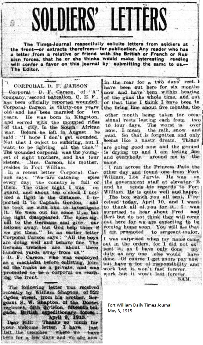 The Fort William Daily Times Journal and the Port Arthur Daily News respectfully solicited letters from soldiers at the front – or extracts therefrom – during the First World War. Any reader who had a letter from a relative or friend with the British, French or Russian forces was invited to submit said letter for publication to the community.