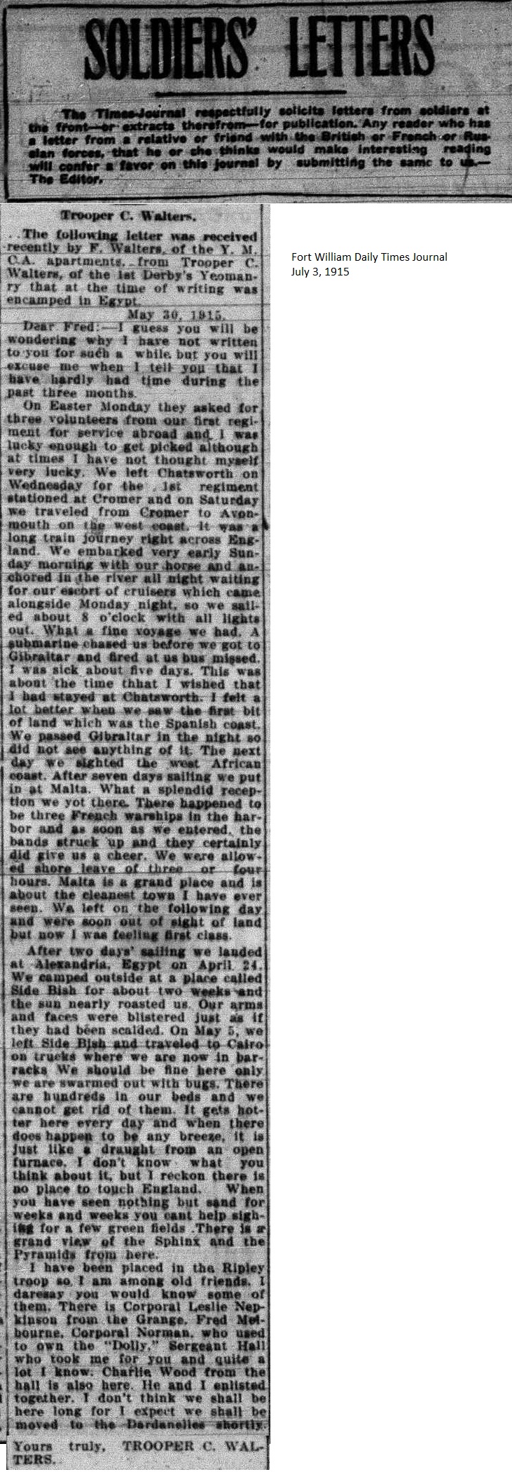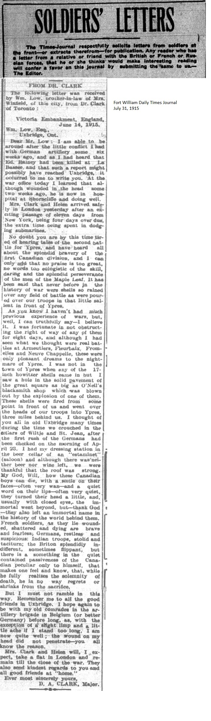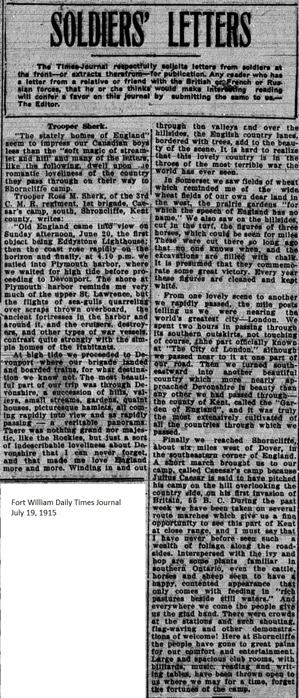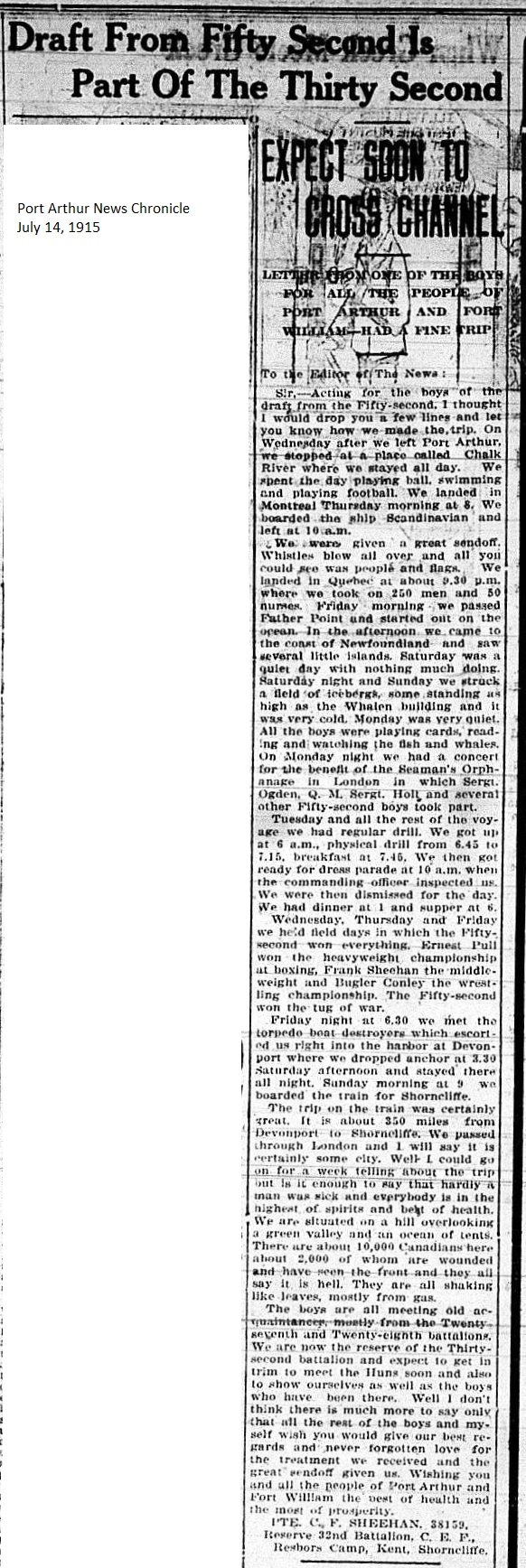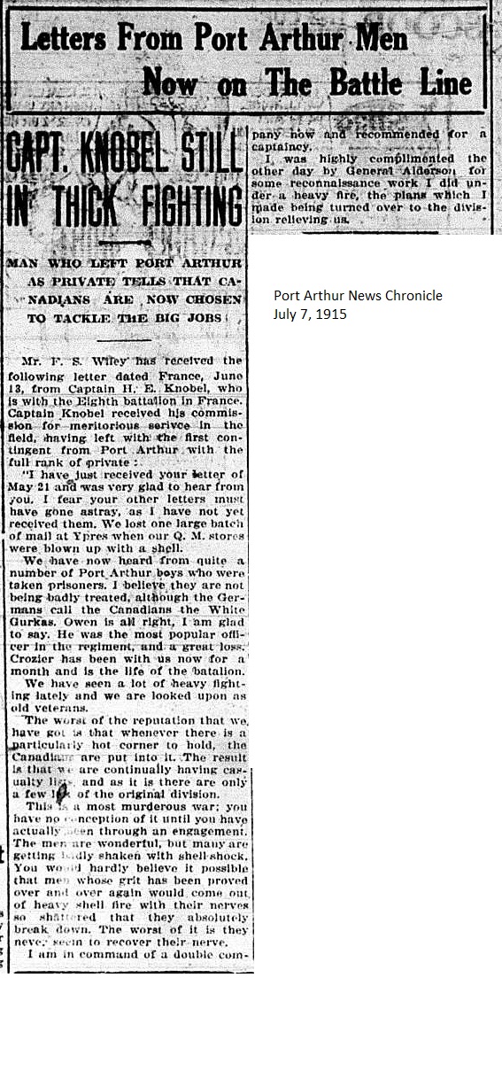 The Fort William Daily Times Journal and the Port Arthur Daily News respectfully solicited letters from soldiers at the front – or extracts therefrom – during the First World War. Any reader who had a letter from a relative or friend with the British, French or Russian forces was invited to submit said letter for publication to the community.