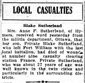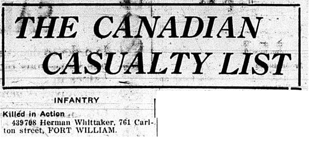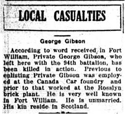 The above index contains published death notices from the Fort William Daily Times Journal (FWDTJ) and the Port Arthur Daily News (PADN), along with links to available attestation papers (through Library and Archives Canada) and Burial Records (through the Commonwealth War Graves Commission) for local individuals who were killed during or as a result of the First World War. The index is updated monthly to coincide with the centennial of these events and commemorate the sacrifice of those individuals and their families. If you know of someone who should be included here, please contact us at ww1project@tbpl.ca.