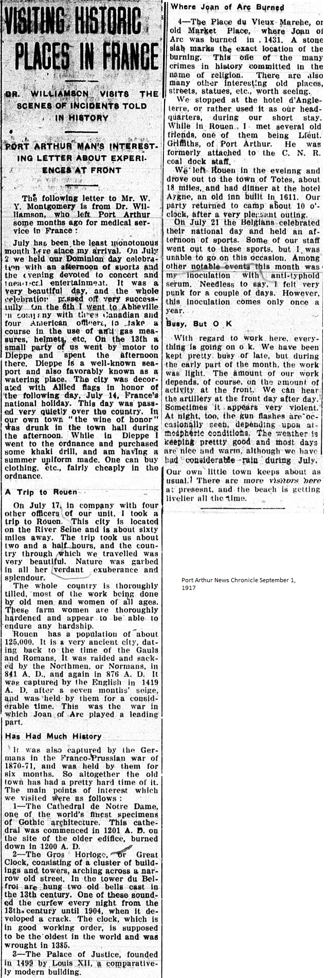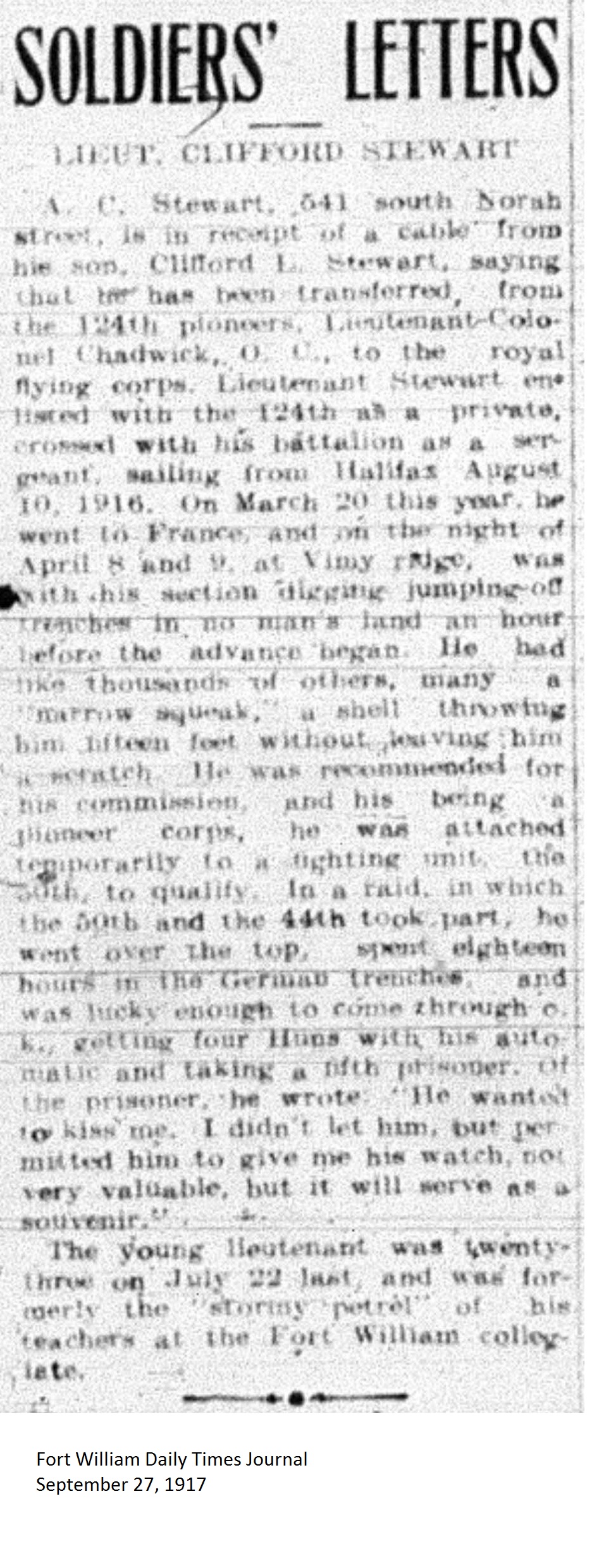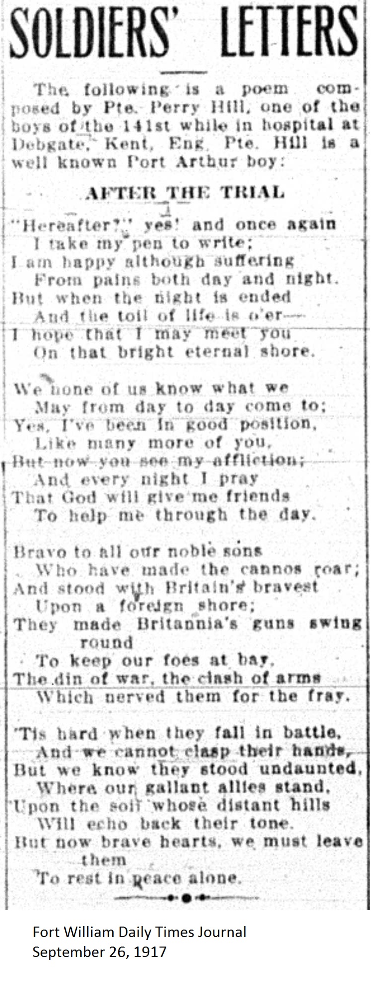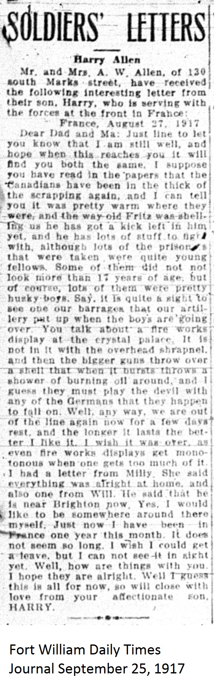 The Fort William Daily Times Journal and the Port Arthur Daily News respectfully solicited letters from soldiers at the front – or extracts therefrom – during the First World War. Any reader who had a letter from a relative or friend with the British, French or Russian forces was invited to submit said letter for publication to the community.