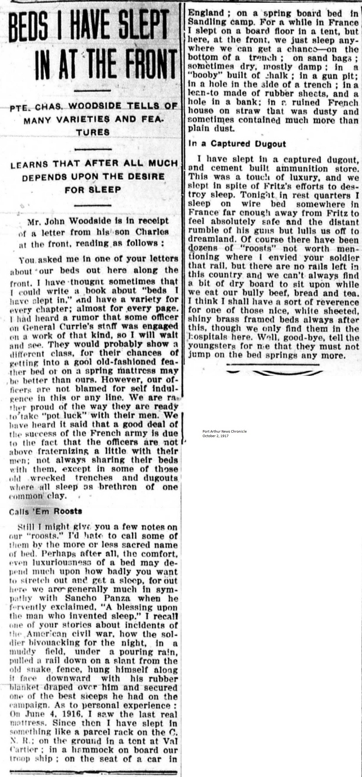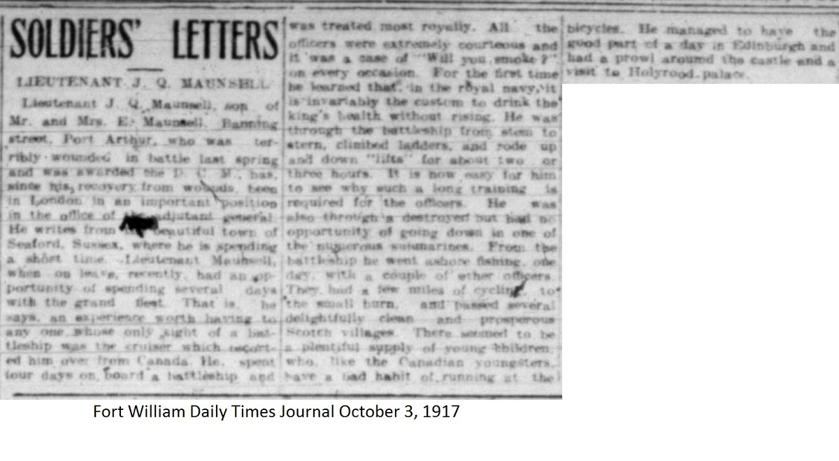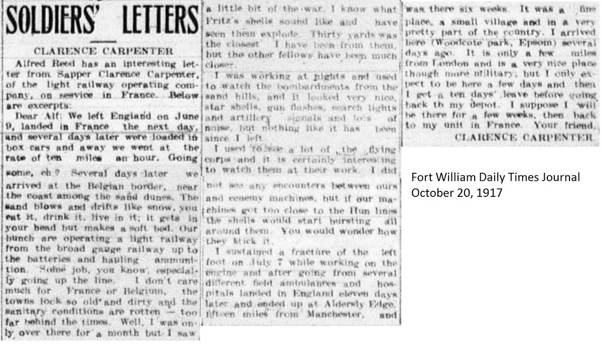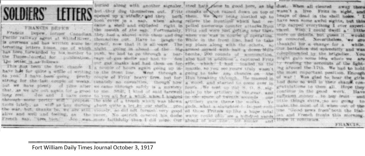 The Fort William Daily Times Journal and the Port Arthur Daily News respectfully solicited letters from soldiers at the front – or extracts therefrom – during the First World War. Any reader who had a letter from a relative or friend with the British, French or Russian forces was invited to submit said letter for publication to the community.