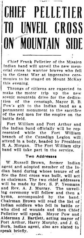 death notices, Indigenous, Life in Thunder Bay, memorials, Military Mount McKay Cross Monument Date: November 22, 2017Author: World War One Thunder Bay Centennial Project 1 Comment Share this: Click to share on X (Opens in new window) X Click to share on Facebook (Opens in new window) Facebook Like Loading... Related