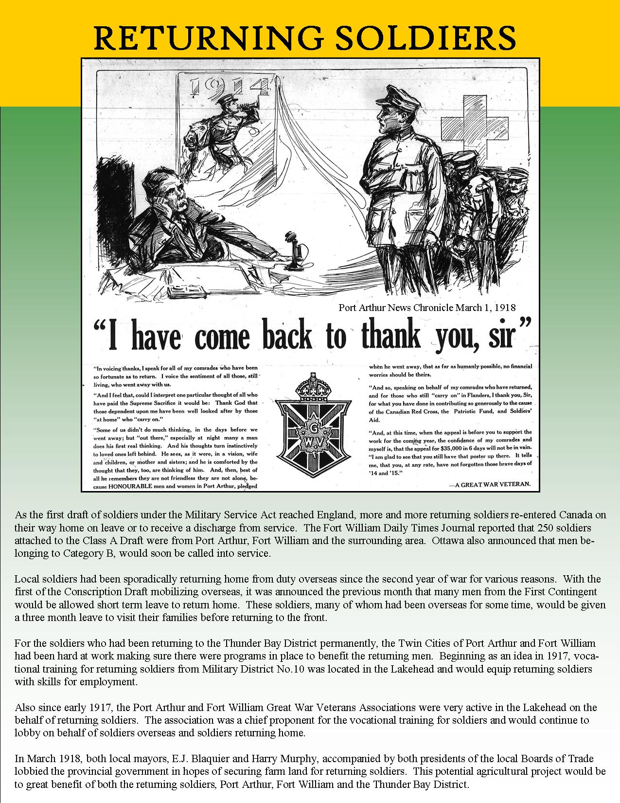 As the City Council of Fort William (above) was invited, so is the City Council of Port Arthur invited to send delegates to discuss the Government Land Settlement for Returned Soldiers and Sailors with the Boards of Trade and will send three representatives.