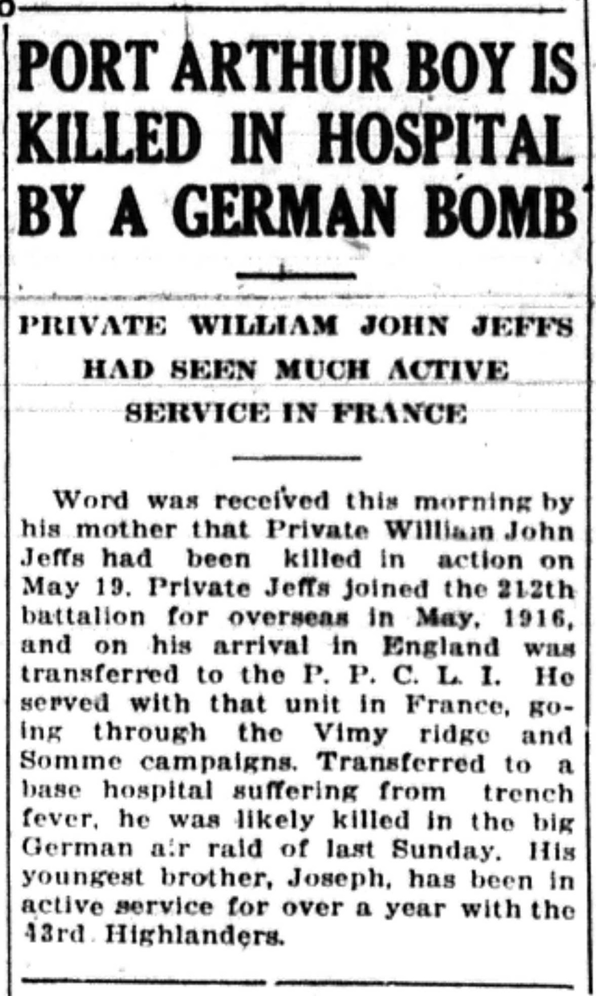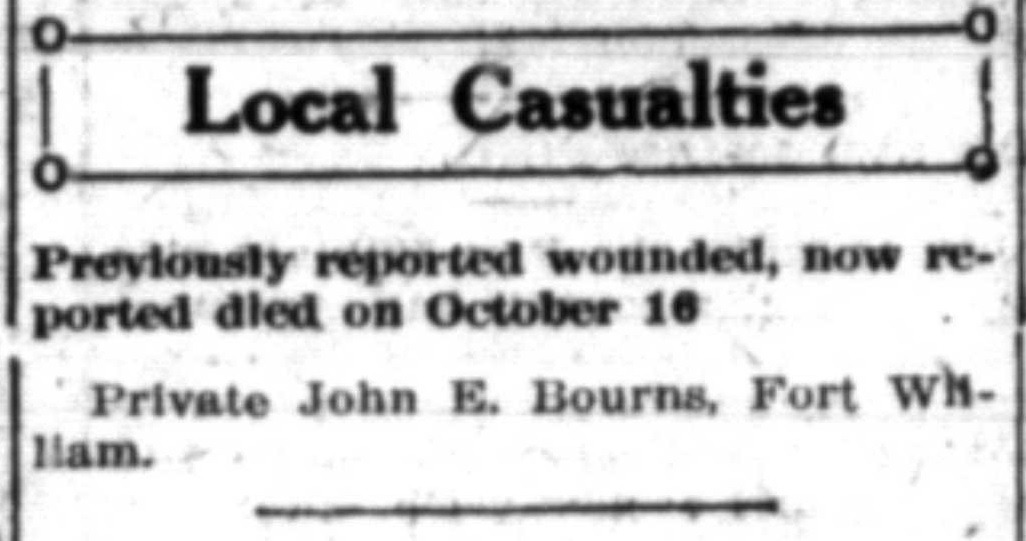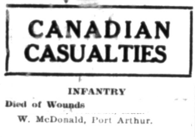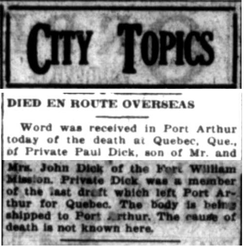 The above index contains published death notices from the Fort William Daily Times Journal (FWDTJ) and the Port Arthur Daily News (PADN), along with links to available attestation papers (through Library and Archives Canada) and Burial Records (through the Commonwealth War Graves Commission) for local individuals who were killed during or as a result of the First World War. The index is updated monthly to coincide with the centennial of these events and commemorate the sacrifice of those individuals and their families. If you know of someone who should be included here, please contact us at ww1project@tbpl.ca.