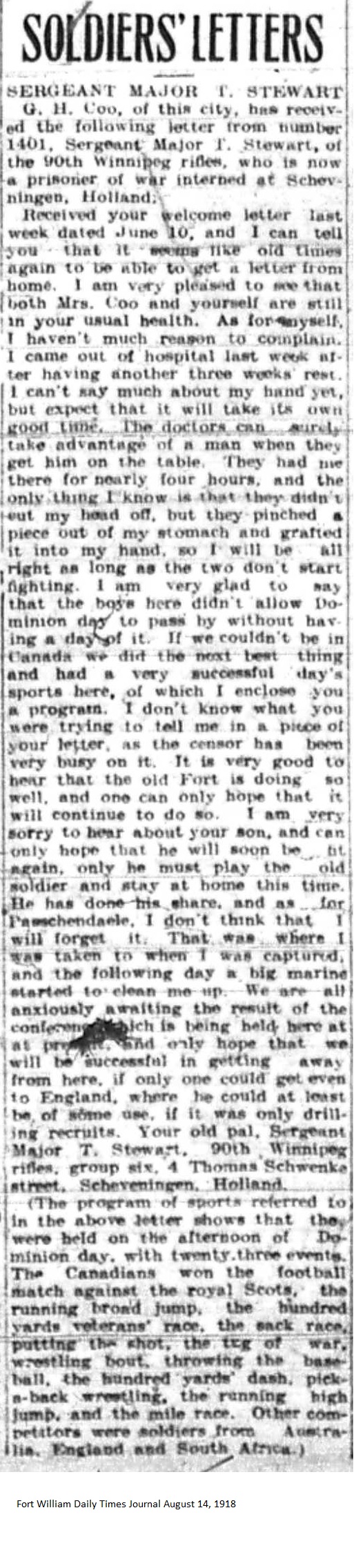 The Fort William Daily Times Journal and the Port Arthur Daily News respectfully solicited letters from soldiers at the front – or extracts therefrom – during the First World War. Any reader who had a letter from a relative or friend with the British, French or Russian forces was invited to submit said letter for publication to the community.
