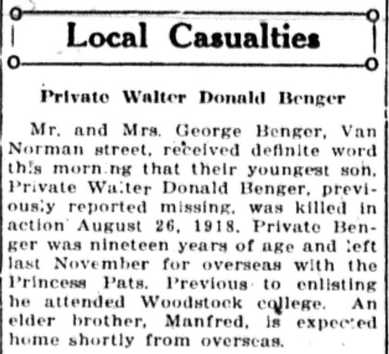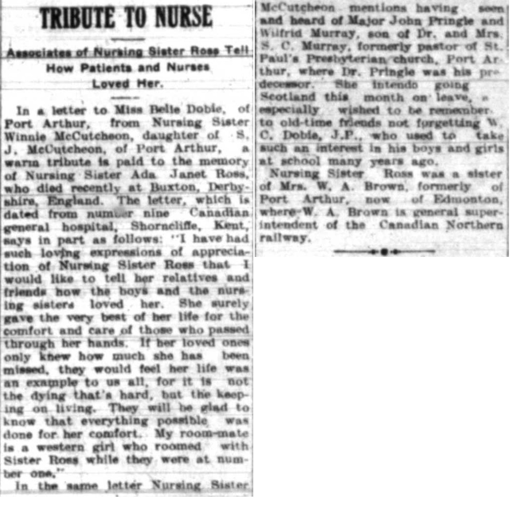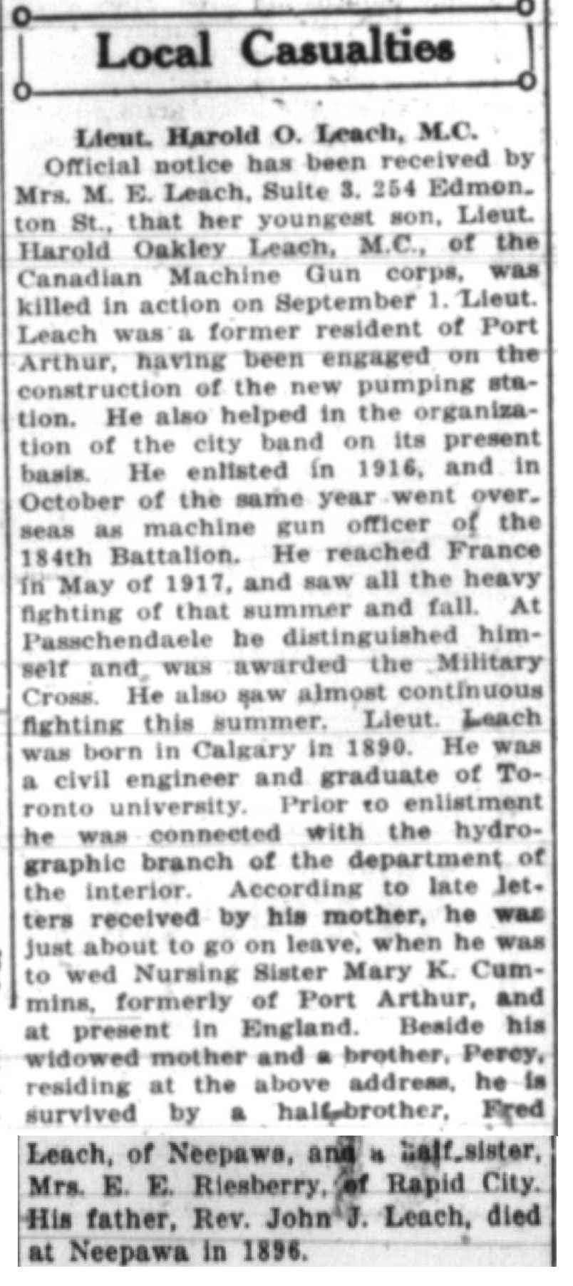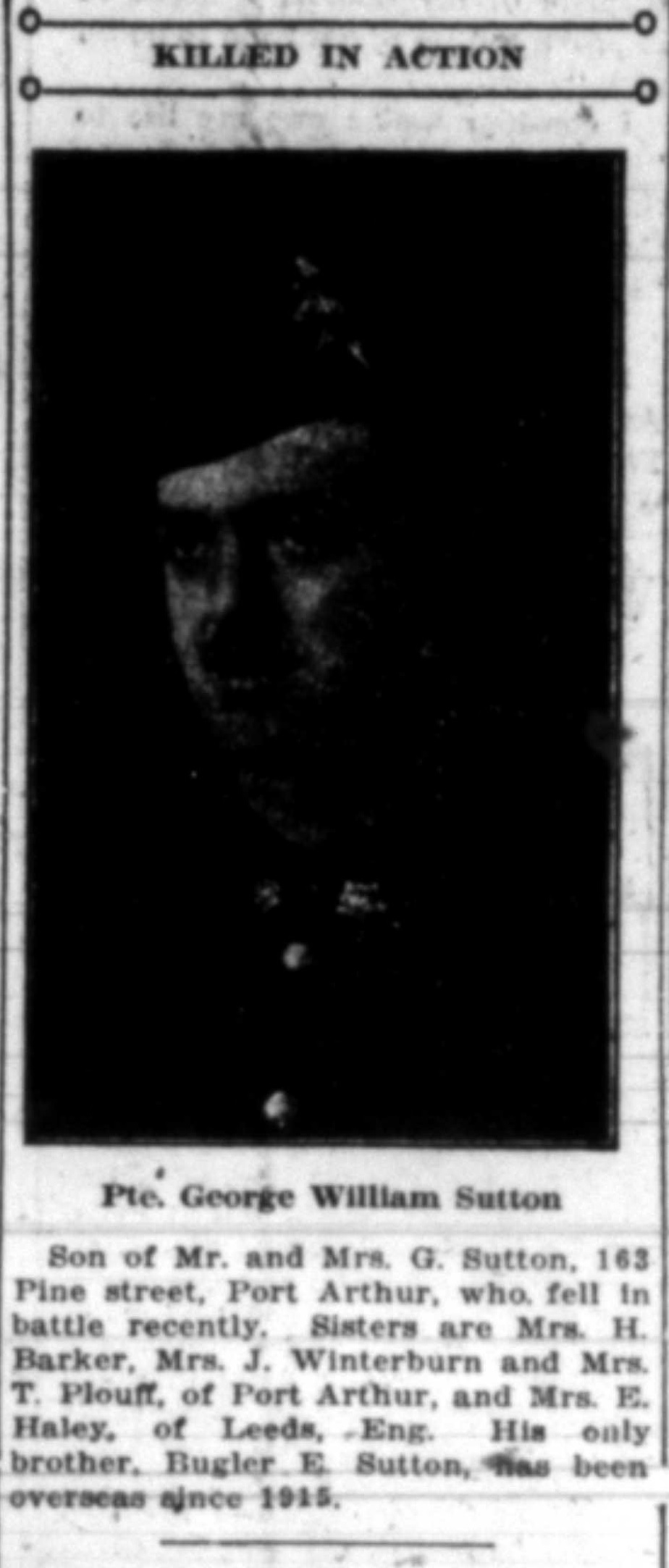 The above index contains published death notices from the Fort William Daily Times Journal (FWDTJ) and the Port Arthur Daily News (PADN), along with links to available attestation papers (through Library and Archives Canada) and Burial Records (through the Commonwealth War Graves Commission) for local individuals who were killed during or as a result of the First World War. The index is updated monthly to coincide with the centennial of these events and commemorate the sacrifice of those individuals and their families. If you know of someone who should be included here, please contact us at ww1project@tbpl.ca.