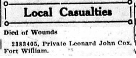Cox, Leonard John (Pte)