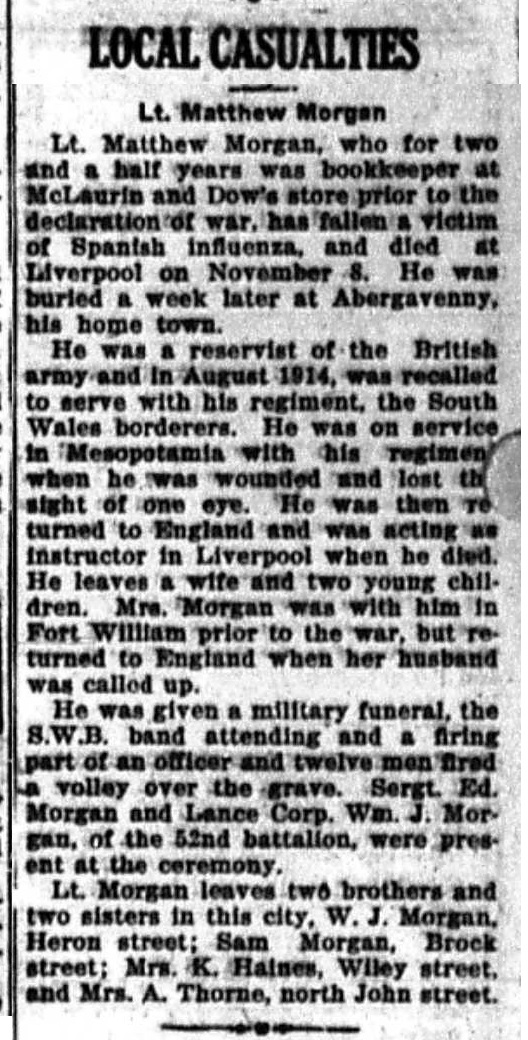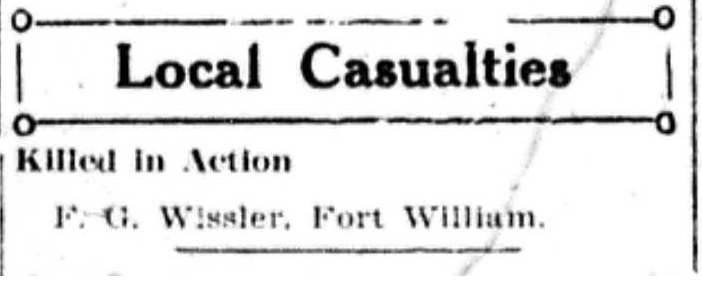 The above index contains published death notices from the Fort William Daily Times Journal (FWDTJ) and the Port Arthur Daily News (PADN), along with links to available attestation papers (through Library and Archives Canada) and Burial Records (through the Commonwealth War Graves Commission) for local individuals who were killed during or as a result of the First World War. The index is updated monthly to coincide with the centennial of these events and commemorate the sacrifice of those individuals and their families. If you know of someone who should be included here, please contact us at ww1project@tbpl.ca.