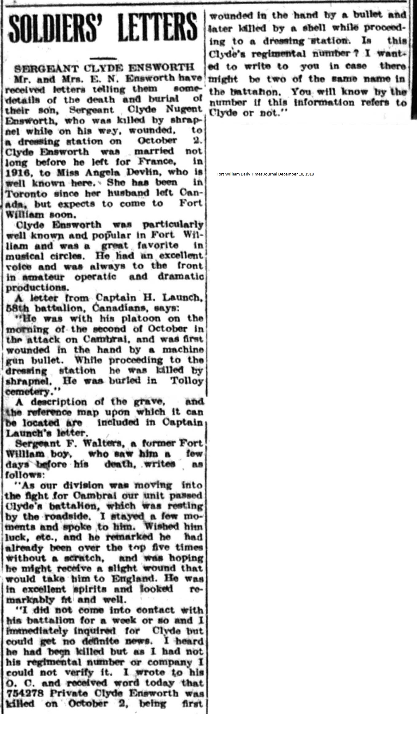 The Fort William Daily Times Journal and the Port Arthur Daily News respectfully solicited letters from soldiers at the front – or extracts therefrom – during the First World War. Any reader who had a letter from a relative or friend with the British, French or Russian forces was invited to submit said letter for publication to the community.