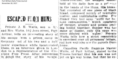 Life in Thunder Bay, People and Stories Escaping a WWI Prisoner of War Camp January 3, 2018 — 0 Comments